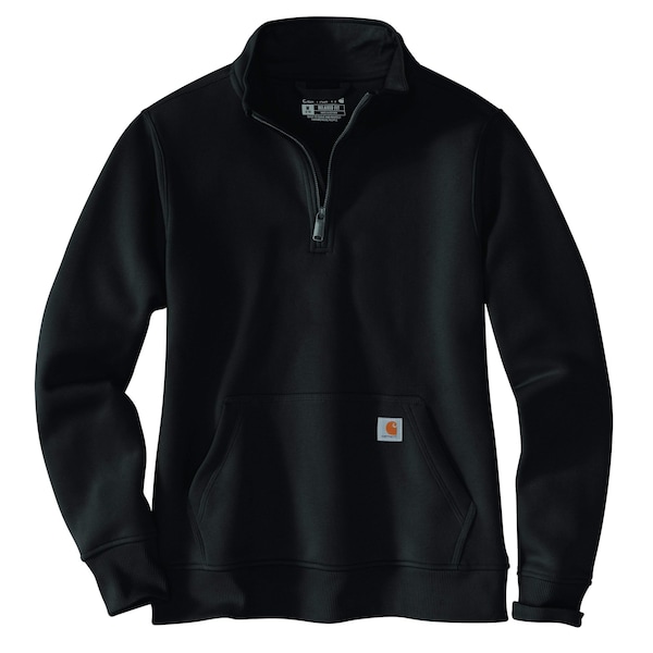 Exclusive Trimming, Machine wash cold like colors, Do not bleach, Tumble dry medium, Cool iron, Do not dry clean RELAXED FIT, 10.5-ounce, 55% cotton, 45% polyester, Mock neck collar, Quarter-length zipper with storm flap, Front handwarmer pockets, Ribbed cuffs and waistband, Imported Fight the chill in this women's Carhartt quarter-zip sweatshirt. The midweight cotton blend and relaxed fit keep you comfortable as you work. Handwarmer pockets and a zip-up collar add extra warmth when the breeze rolls in.