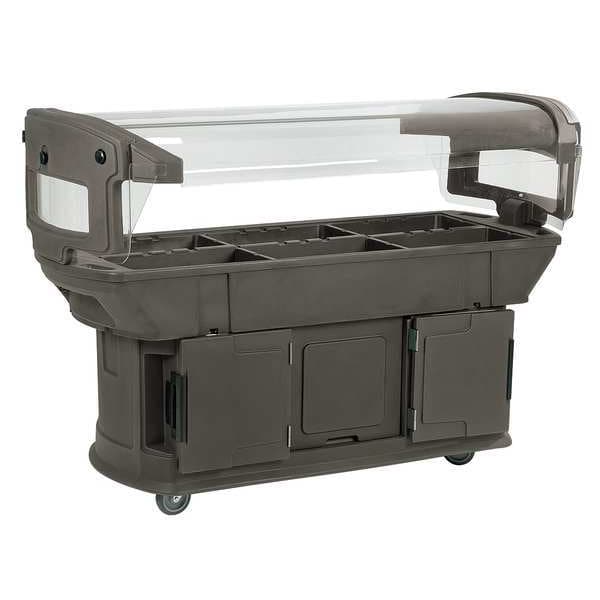 Food Bar, Product Type Food Bar, Color Brown, Holding Capacity 6 Full Size Pans, Material Polyethylene, Number of Compartments/Wells 6, Overall Height 54 1/2 in, NSF Certified Yes, Overall Length 54 1/2 in