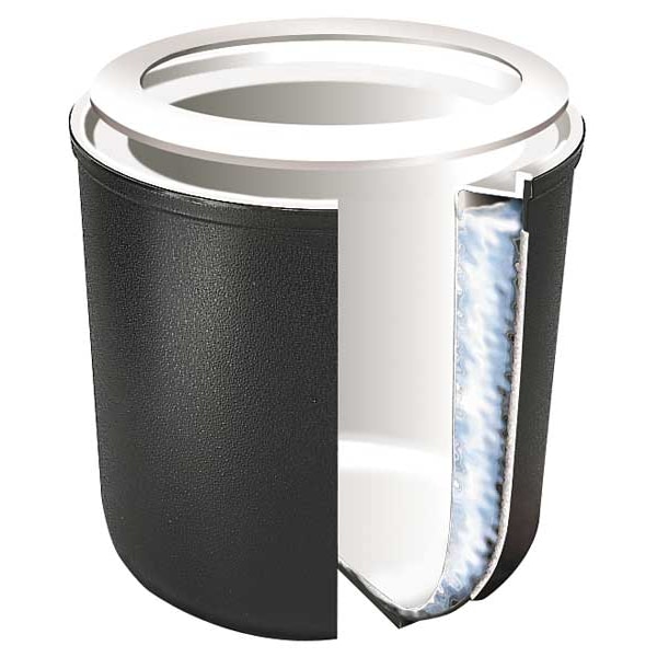 Cold Crock, Includes Coaster, Product Type Cold Crock, Capacity 2 qt, Dishwasher Safe No, Freezer Safe Yes, Inside Diameter 5 1/4 in, Material Polypropylene, NSF Certified Yes, Oven Safe No, Overall Height 7 1/4 in, Color Black