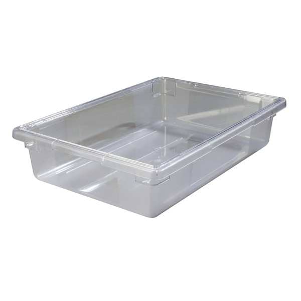 Food Storage Container, Capacity 8.5 gal, Color Clear, Material Polycarbonate, Overall Height 6 in, Overall Length 26 in, Overall Width 18 in, NSF Certified Yes, Dishwasher Safe Yes, Maximum Temperature 212 Degrees F, Microwaveable No, Minimum Temperature -40 Degrees F, Freezer Safe Yes, Product Type Food Storage Container, Graduated No, Lid Color Clear, Inside Length 24 in, Inside Width 16 in, Includes Handle Yes, Inside Diameter Not Applicable, Package Quantity 6
