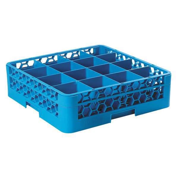 Glass Rack with 1 Extender, Material Polypropylene, Compartment Size 4 7/16 x 4 7/16 in, Maximum Cup Height 4 3/4 in, Maximum Cup Diameter 4 1/4 in, Maximum Handling Temperature 180 Degrees F, Product Type Glass Rack, Color Blue, Number of Compartments 16, Outside Rack Height 5 1/2 in, Overall Depth 4 1/2 in, Overall Height 5 1/2 in, Overall Length 19 7/8 in, Overall Width 19 7/8 in, NSF Certified Yes, Package Quantity 4