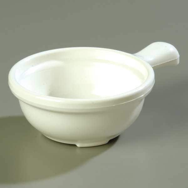 Handled Soup Bowl, Color White, Diameter 5 1/4 in, Overall Width Not Applicable, Overall Length Not Applicable, Overall Height 2 3/8 in, Product Type Handled Soup Bowl, Capacity 12 oz, Material Polycarbonate/SAN, Package Quantity 24