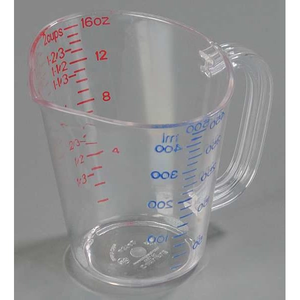 Measure Cup, Overall Height 4 3/16 in, Material Polycarbonate, Color Clear, Maximum Temperature Resistance 212 Degrees F, Capacity 16 fl oz, Dry/Liquid Dry, Liquid, Product Type Measuring Cup, Graduation Subdivisions 2 cups, Overall Length 4 3/4 in, Overall Width 5 1/8 in, NSF Certified Yes, Package Quantity 6