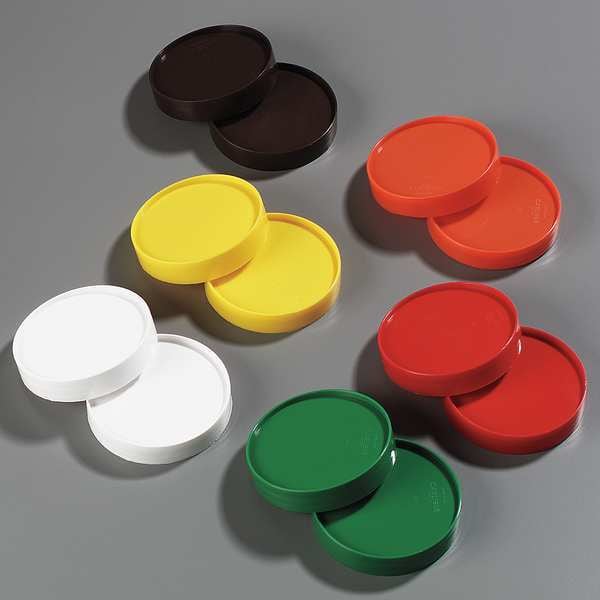 Pourer Container Lid, Product Type Pourer Container Lid, Color Brown, Green, Orange, Red, White, Yellow, Includes Caps, Material Polyethylene, Overall Diameter 3 1/2 in, Overall Height 3/4 in, Package Quantity 12