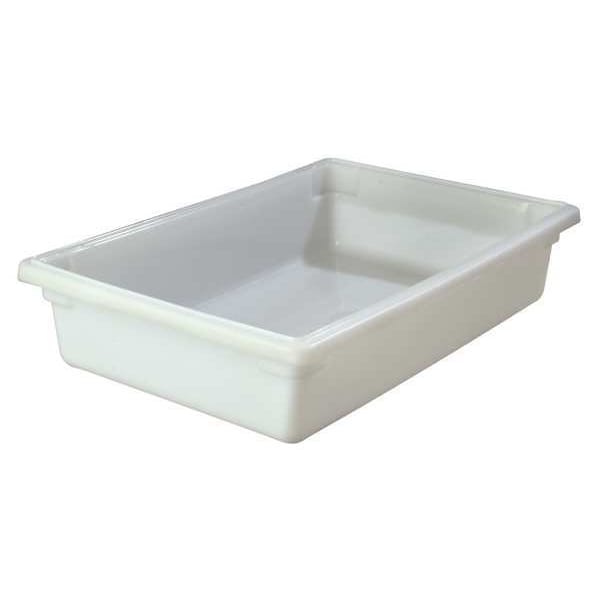 Food Storage Container, Capacity 34 qt, Color White, Material Polyethylene, Overall Height 6 in, Overall Length 26 in, Overall Width 18 in, NSF Certified Yes, Dishwasher Safe Yes, Maximum Temperature 160 Degrees F, Microwaveable No, Minimum Temperature 32 Degrees F, Freezer Safe No, Product Type Food Storage Container, Graduated No, Inside Length 24 in, Inside Width 16 in, Includes Handle Yes, Inside Diameter Not Applicable, Package Quantity 6