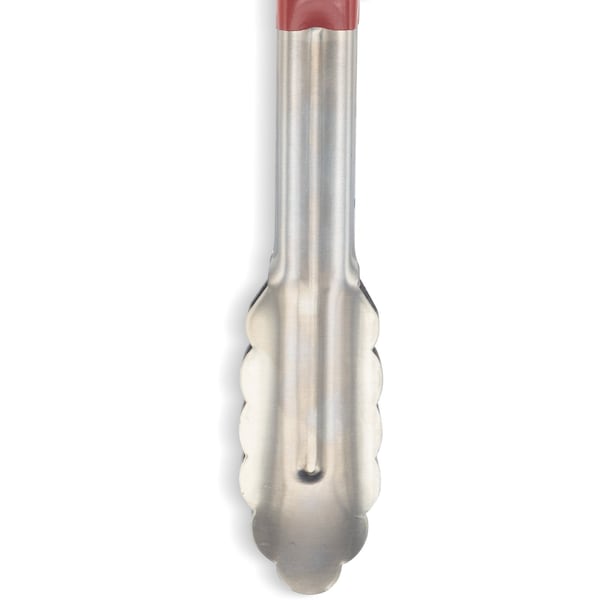 Serving Tongs, Coated Handle Yes, Handle Color Red, Dishwasher Safe No, Product Type Serving Tongs, Locking No, Maximum Temperature 195 Degrees F, Overall Length 9 1/2 in, Overall Width 5 in, NSF Certified Yes, Handle Material Plastic, Color Red, Blade Material Stainless Steel, Package Quantity 12