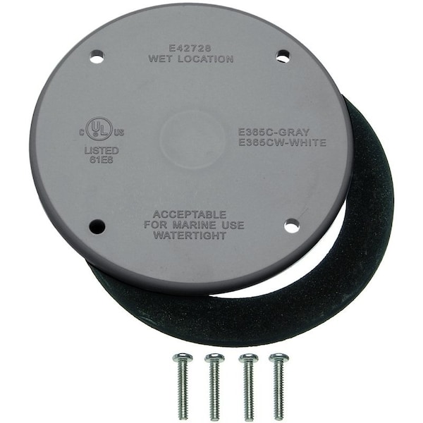 Cover, 4 in Dia, Round, PVC, Gray