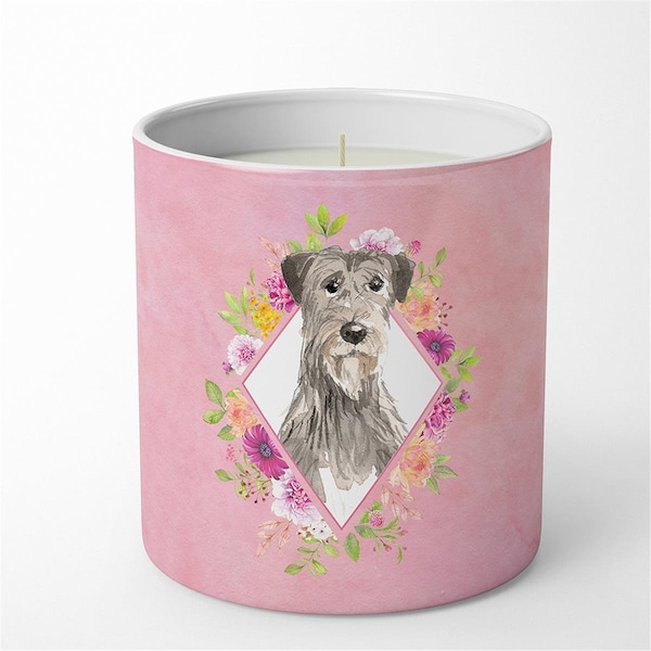 10 oz Irish Wolfhound Pink Flowers Decorative Soy Candle