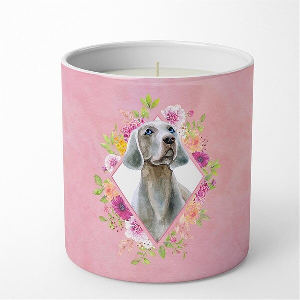 10 oz Weimaraner Pink Flowers Decorative Soy Candle