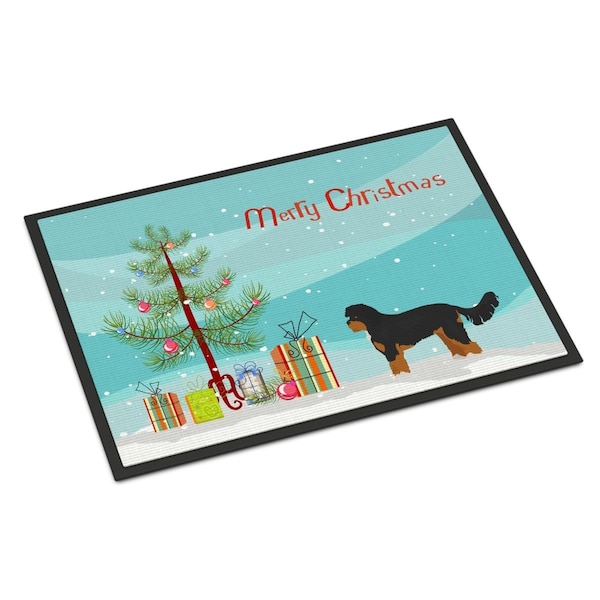 18 x 27 in. Black & Tan Cavapoo Christmas Tree Indoor or Outdoor Mat