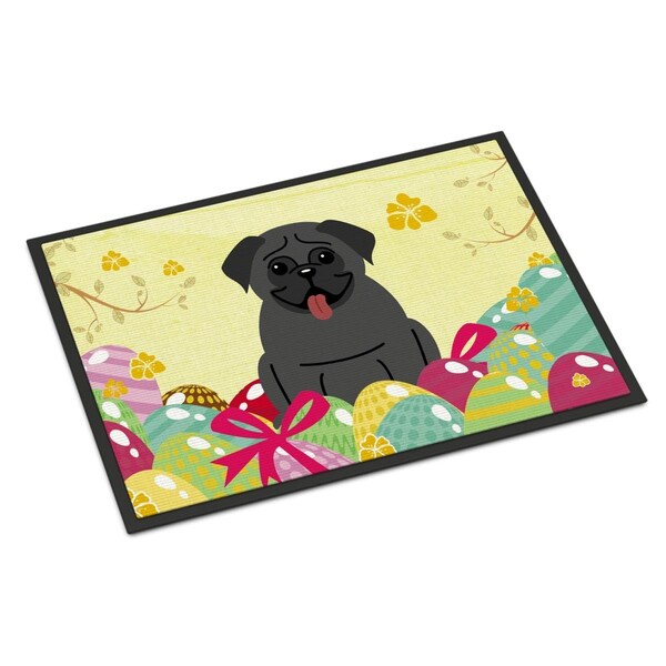 18 x 27 in. Easter Eggs Pug Black Indoor or Outdoor Mat