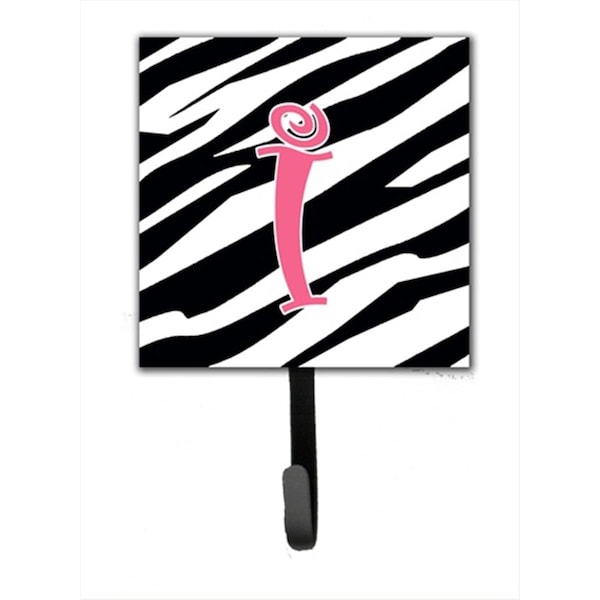 4.25 x 6 in. Letter I Initial Monogram Zebra Stripe and Pink Leash Or Key Hook