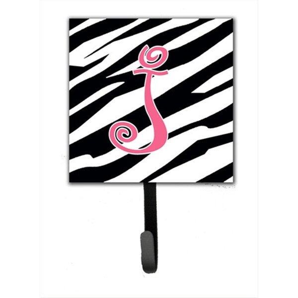 4.25 x 6 in. Letter J Initial Monogram Zebra Stripe and Pink Leash Or Key Hook