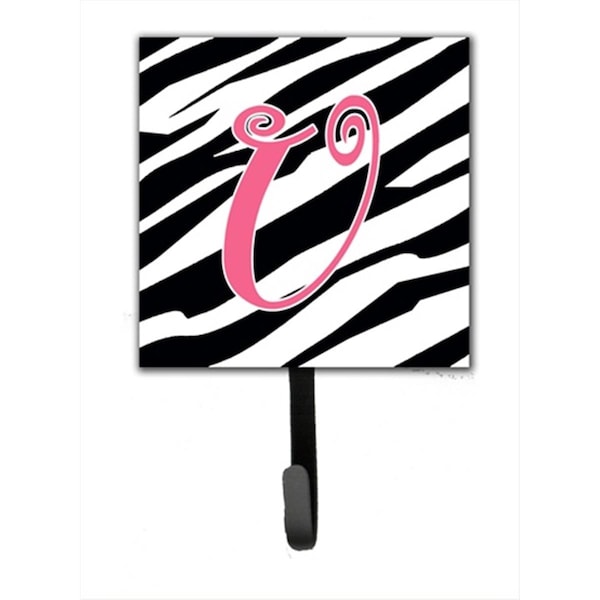 4.25 x 6 in. Letter U Initial Monogram Zebra Stripe and Pink Leash Or Key Hook