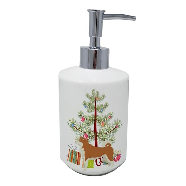7 x 3.5 in. Akita Christmas Tree Ceramic Soap Dispenser