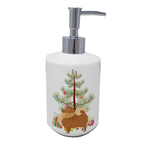 7 x 3.5 in. Pomeranian Christmas Tree Ceramic Soap Dispenser