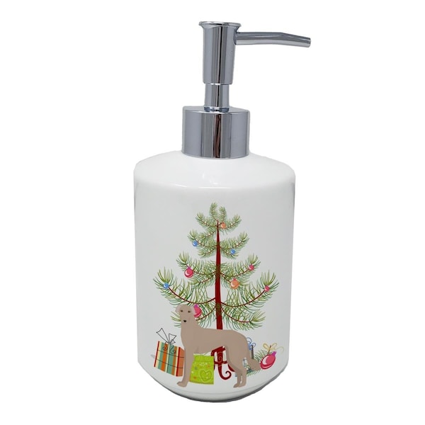 7 x 3.5 in. Tan Longdog Christmas Tree Ceramic Soap Dispenser