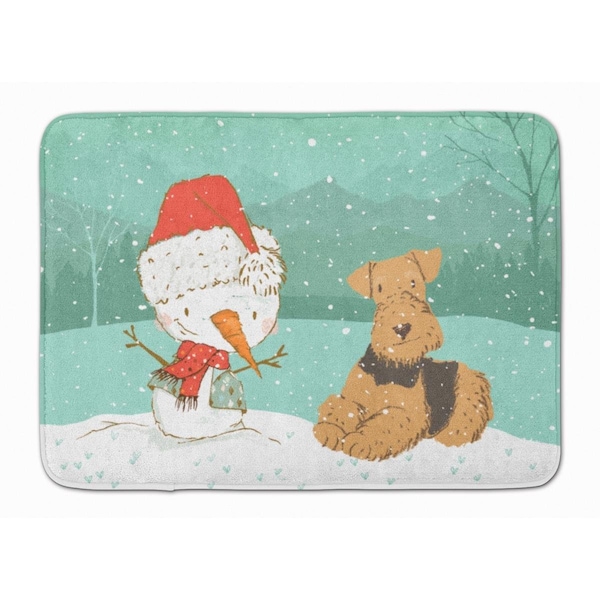 Airedale Terrier Snowman Christmas Machine Washable Memory Foam Mat