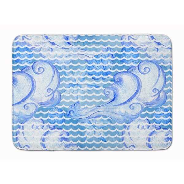 Beach Watercolor Abstract Waves Machine Washable Memory Foam Mat