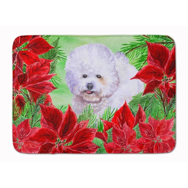 Bichon Frise Poinsettas Machine Washable Memory Foam Mat