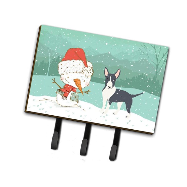 Black Bull Terrier Snowman Christmas Leash or Key Holder