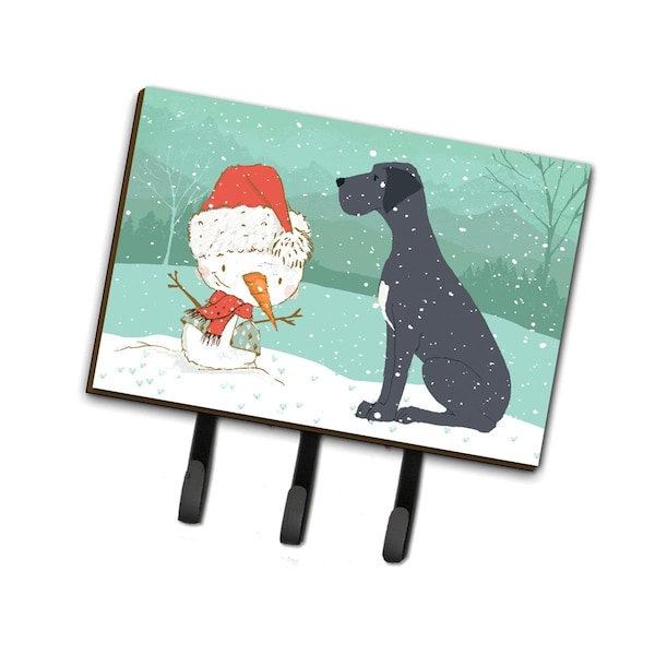 Black Great Dane & Snowman Christmas Leash or Key Holder
