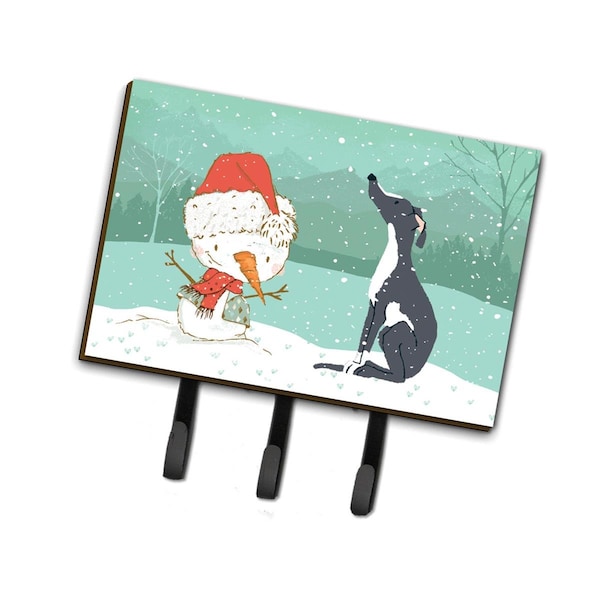 Black Greyhound Snowman Christmas Leash or Key Holder