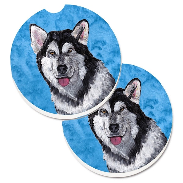 Blue Alaskan Malamute Set of 2 Cup Holder Car Coaster