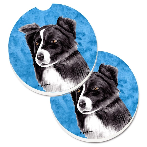 Blue Border Collie Set of 2 Cup Holder Car Coaster