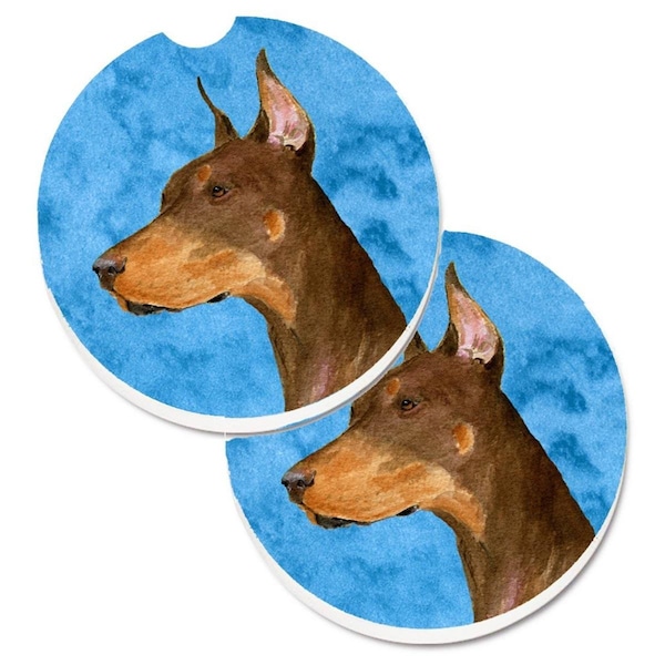 Blue Doberman Set of 2 Cup Holder Car Coaster