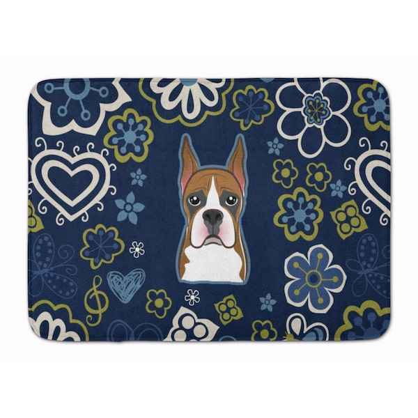 Blue Flowers Boxer Machine Washable Memory Foam Mat