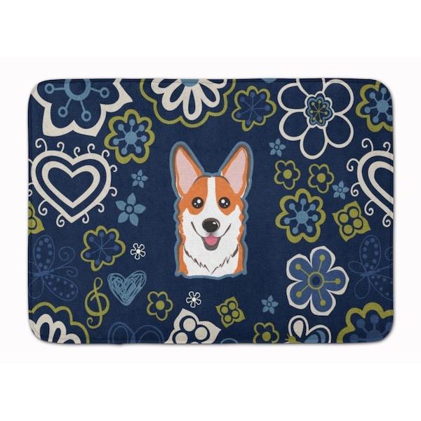 Blue Flowers Red Corgi Machine Washable Memory Foam Mat