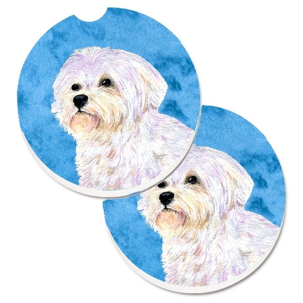 Blue Maltese Set of 2 Cup Holder Car Coaster