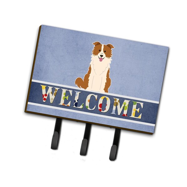 Border Collie Red White Welcome Leash or Key Holder