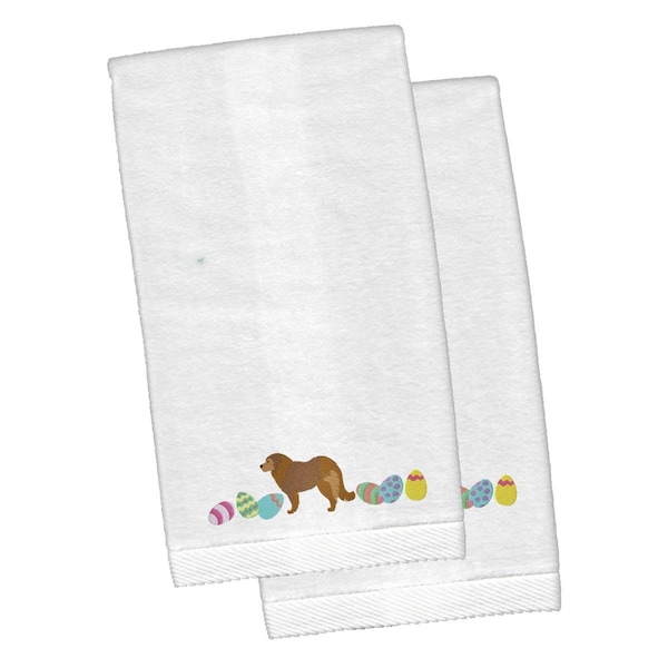 Brown Caucasian Shepherd Easter White Embroidered Plush Hand Towel, 2PK
