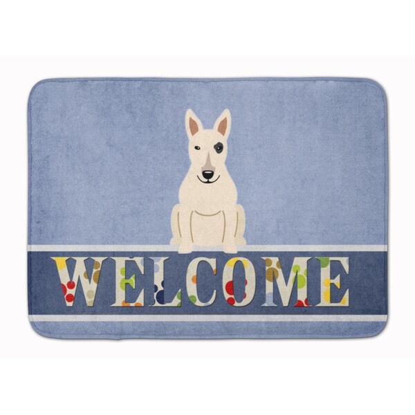 Bull Terrier White Welcome Machine Washable Memory Foam Mat