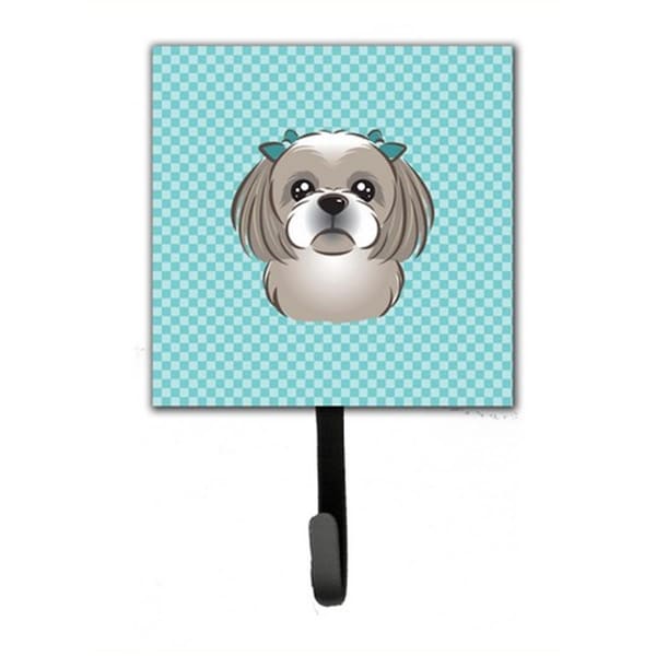 Checkerboard Blue Gray Silver Shih Tzu Leash and Key Holder