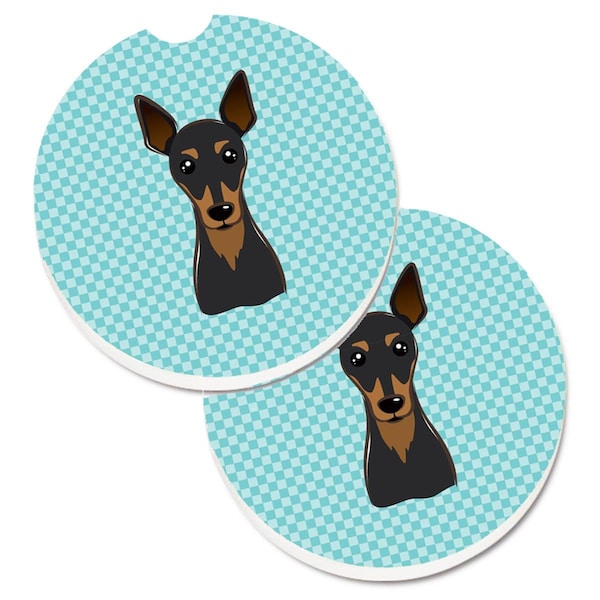 Checkerboard Blue Min Pin Set of 2 Cup Holder Car Coaster