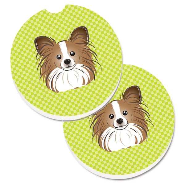 Checkerboard Lime Green Papillon Set of 2 Cup Holder Car Coaster