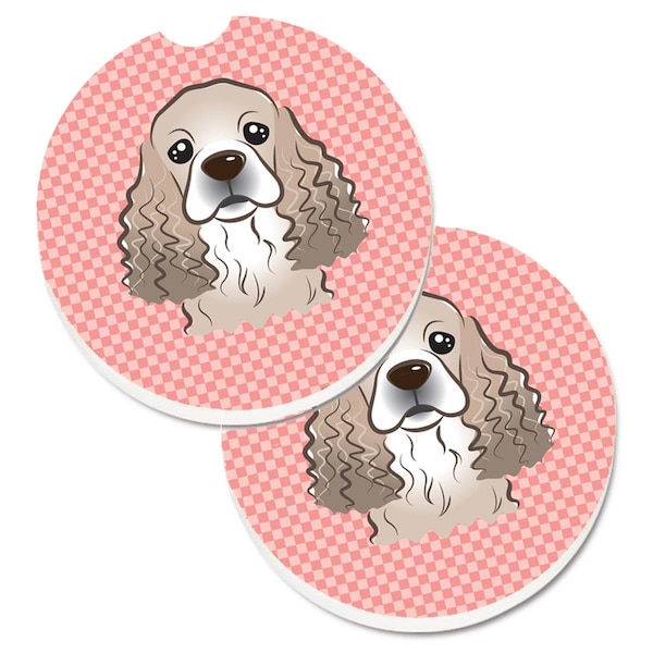 Checkerboard Pink Cocker Spaniel Cup Holder Car Coaster, PK2