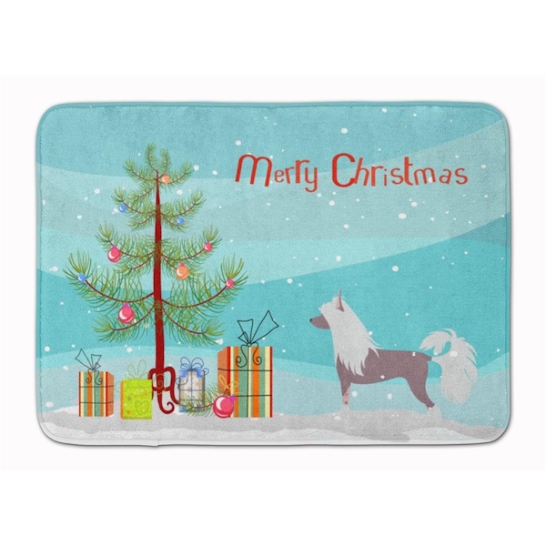 Chinese Crested Merry Christmas Tree Machine Washable Memory Foam Mat