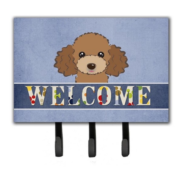 Chocolate Brown Poodle Welcome Leash and Key Holder