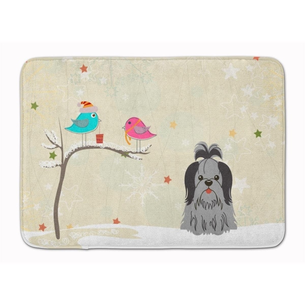 Christmas Shih Tzu Black and Silver Machine Washable Memory Foam Mat