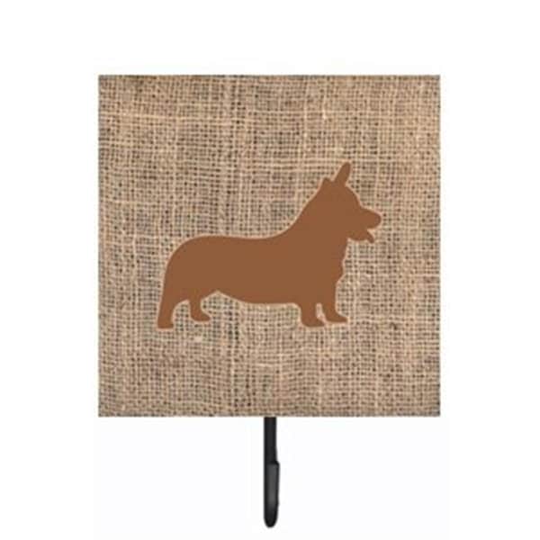 Corgi Burlap and Brown Leash Or Key Holder