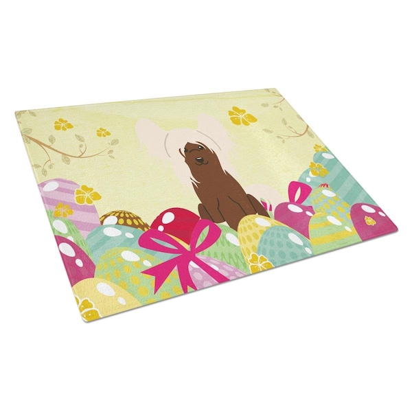 Easter Eggs Chinese Crested Cream Glass Cutting Board Large (Discontinued)