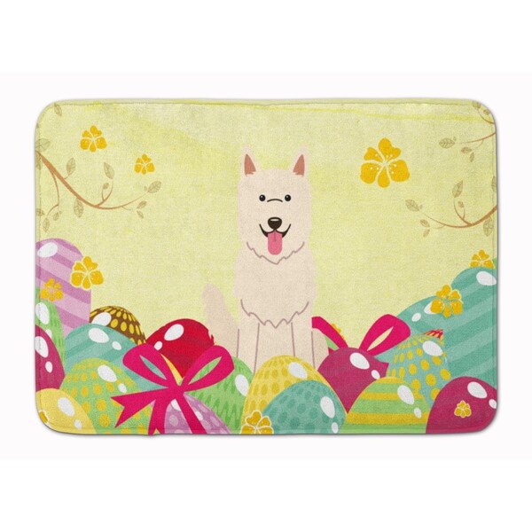 Easter Eggs White German Shepherd Machine Washable Memory Foam Mat
