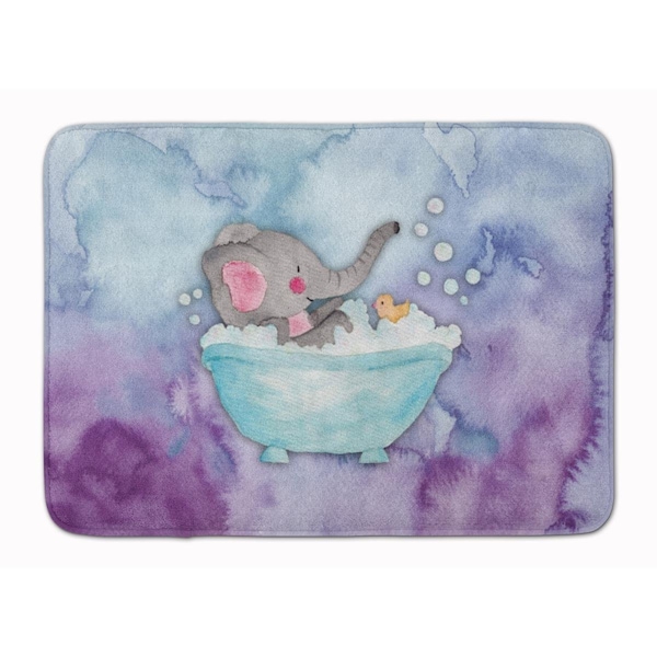 Elephant Bathing Watercolor Machine Washable Memory Foam Mat