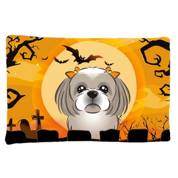 Halloween Gray Silver Shih Tzu Fabric Standard Pillowcase