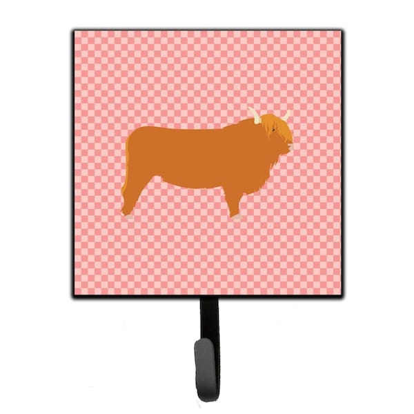 Highland Cow Pink Check Leash or Key Holder