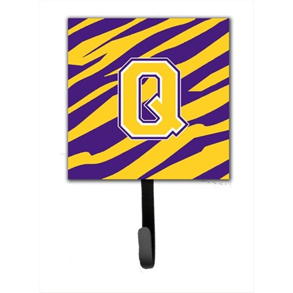 Initial Q Tiger Stripe - Purple Gold Leash Holder Or Key Hook